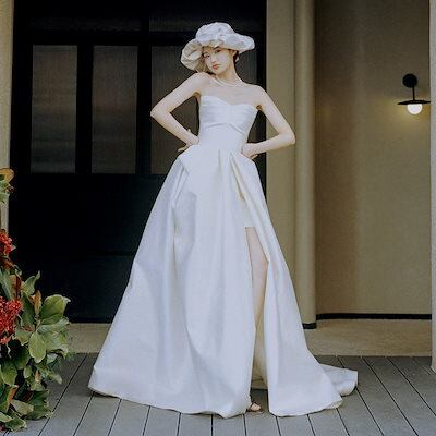 新作追加!!! 結婚式 フランス チューブトップブラ サテン ドレス ドレス ワンピース セクシー ウエディングドレス 花嫁 披露宴 二次会 謝恩会 発表会 演奏会 女子会