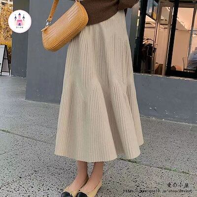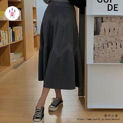 ニット半身スカート女性フレンチ優しさ新型ハイウエストドレープ感大振りスリムプリーツスカートミディアム毛糸傘スカート