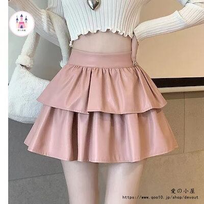 ポンポンプリーツpu皮半身スカートレディース秋冬2024新型小柄ポンポンスカートハイウエストスリムケーキスカート