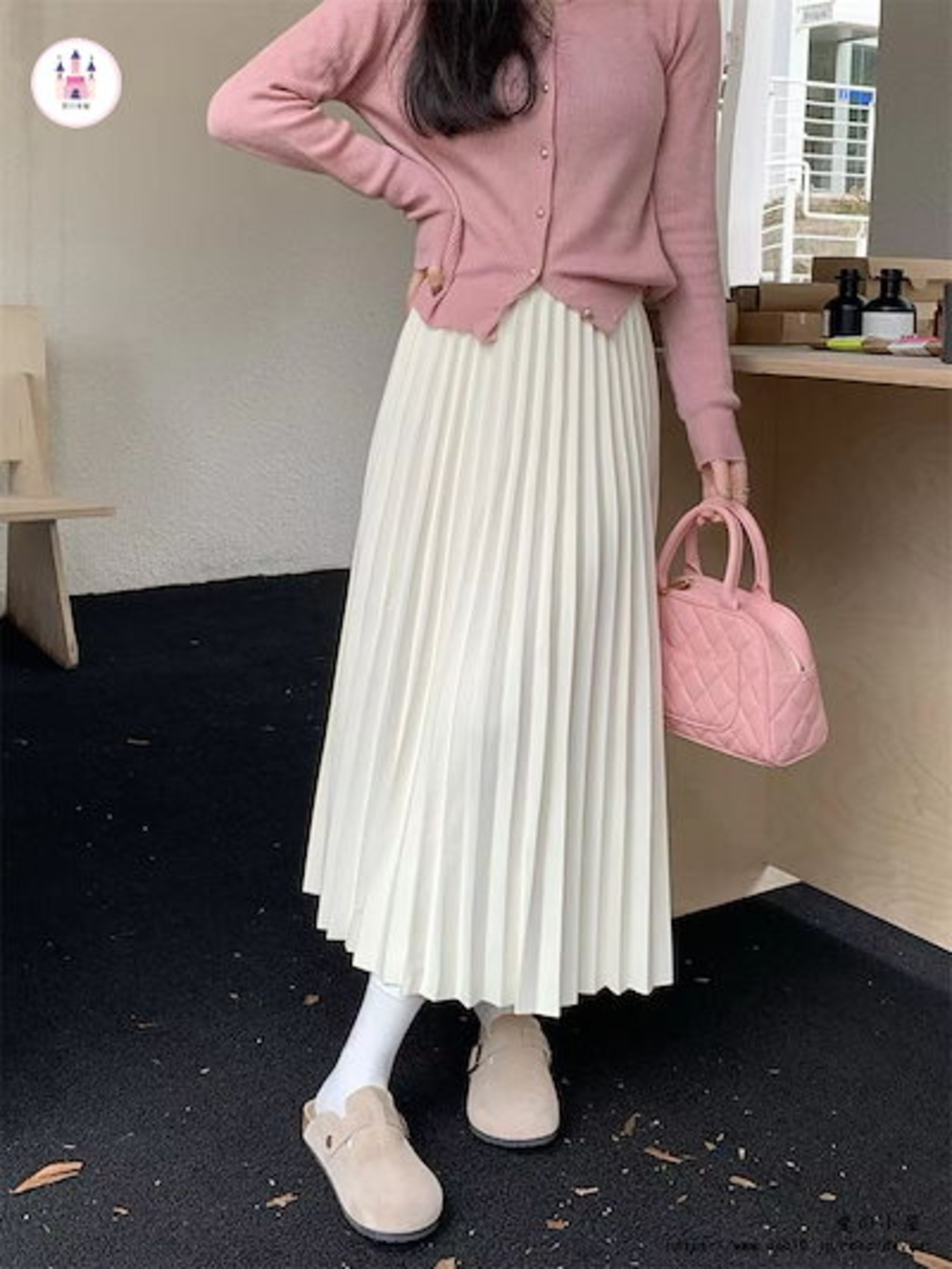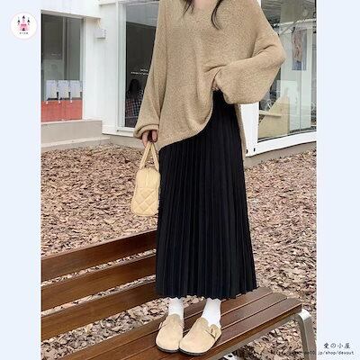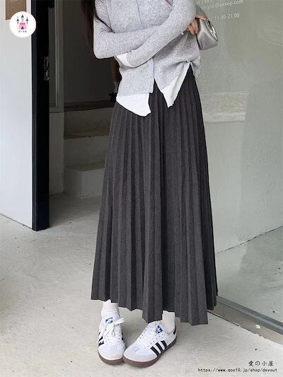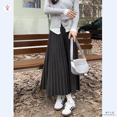 秋冬2024年新作厚毛ツイードロングスカートウエストをゆるめたハイウエストプリーツスカートミディアム丈半身スカート女