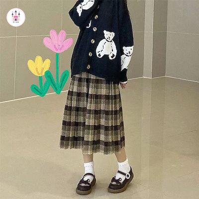 2024秋冬レトロプリーツ半身スカート日系文芸痩せチェック女子学生韓国版ミディアム丈
