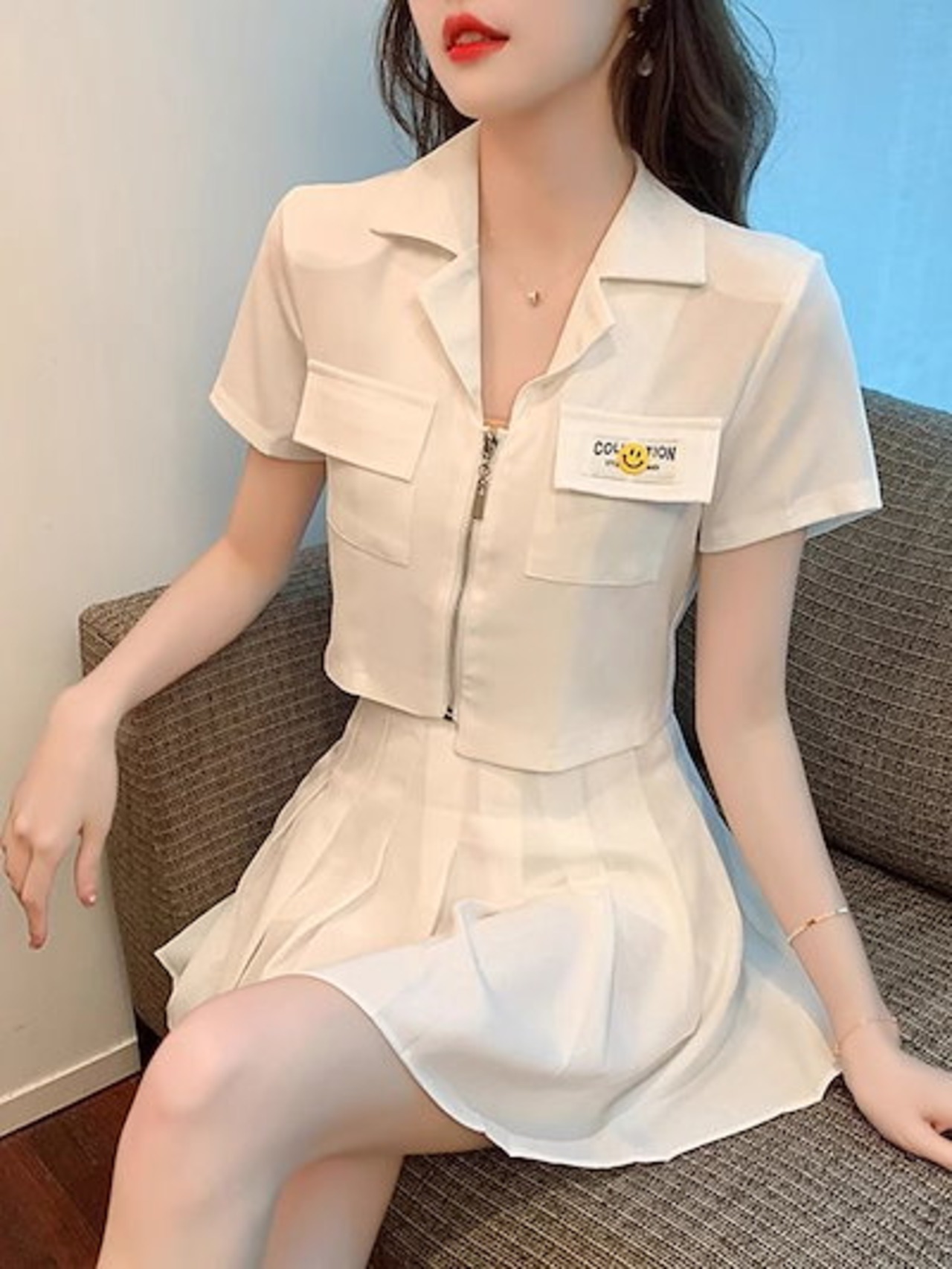 涼しく楽ちんセットアップ ファッション 2つのセット 2024夏モデル 薄手の金 半袖トップス+プリーツスカート セット レディース 韓国