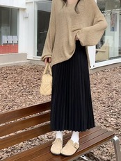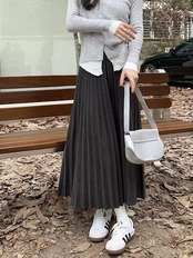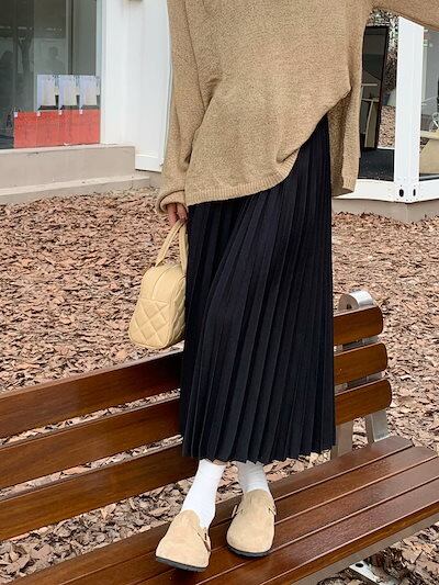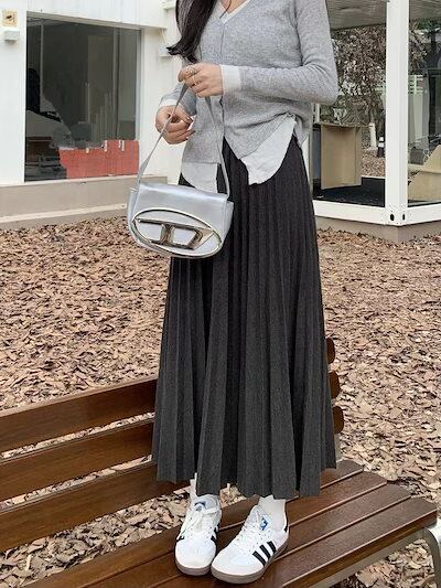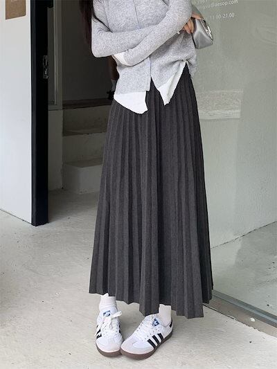 マキシスカート グレー ツイード プリーツスカート 秋冬 半そでスカート レディース 2024新作 伸縮性あり ハイウエスト シャープで細い ミディアム丈 ラインスカート韓国