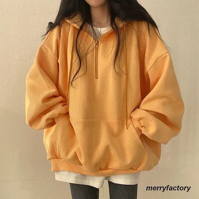 アウター パーカー ハーフジップパーカー レディース トップス トレーナー スウェット かわいい おしゃれ 可愛い 長袖 薄手 普段着 通勤 韓国ファッション