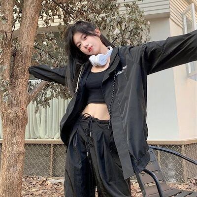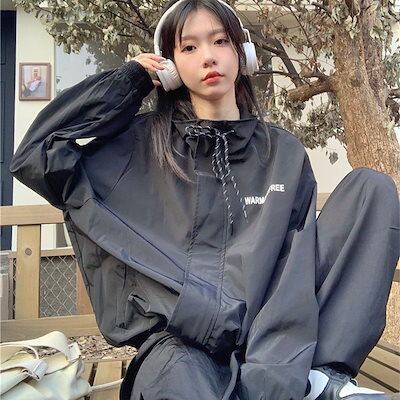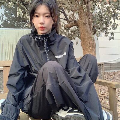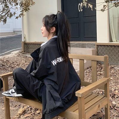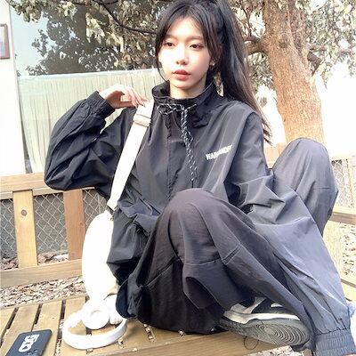 アウター ブラック 襟 ワークスタイル ルーズ パンチングジャケット レディース クライミング 防水 長袖 スポーツ トップス 秋 韓国