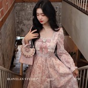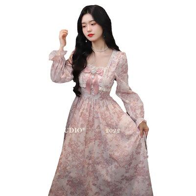 ワンピース 秋冬 ファッション フレンチ スタンピング 長袖 ロングドレス ハイウエスト ドレス レディース 韓国