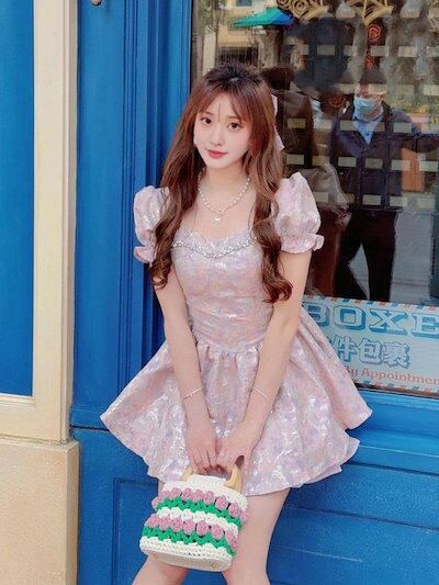 コスプレ 韓国 フランス 気質 甘い ピンク ワンピース レディース 腰をすぼめる やせて見える 角領 ポンポンスカート 花嫁 茶会