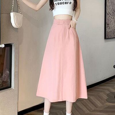 マキシスカート 2024 夏 秋 ファッション レディース ハイウエスト 薄手 ラインスカート 百掛け ソリッドカラー ミドル丈 ワークドレス 韓国