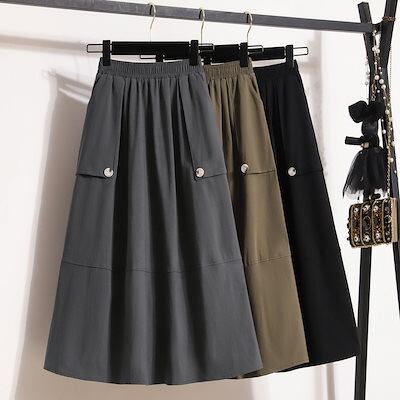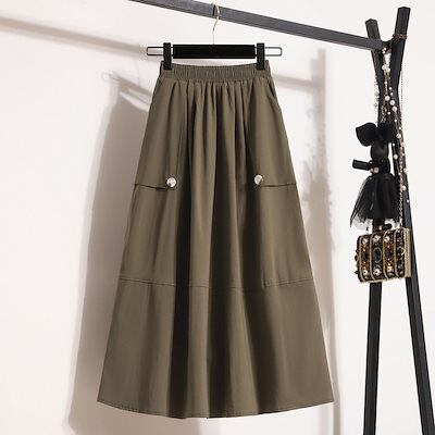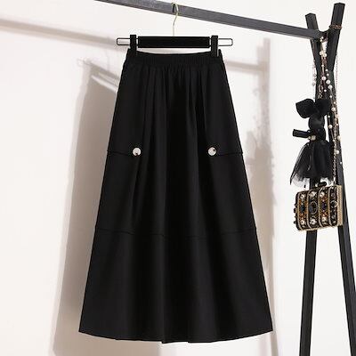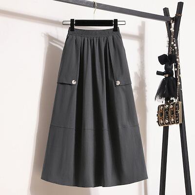 マキシスカート 2024年の夏と秋 気質 ウエストゴム カジュアル スリム ワークドレス 大きな裾 ミドル丈半身スカート 韓国