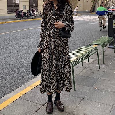ワンピース クラッシュフラワー レディース 2024 春と秋の新作 インナー ボトムドレス テンパメント ウエスト 膝丈 韓国