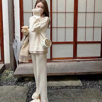 ベーシックニット 秋冬 新作 おしゃれ 気質 上下レディースセットアップ ニット アウター 二点セット セーター ワイドパンツ セットアップ 通勤 長袖セーター 福袋