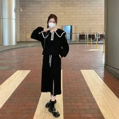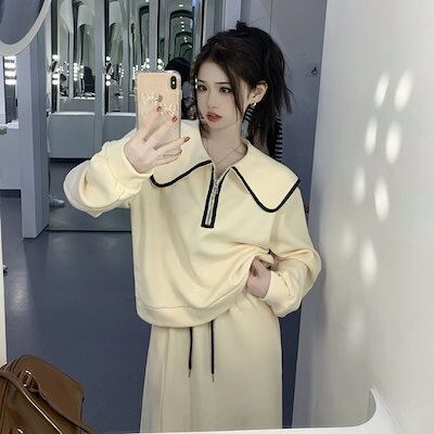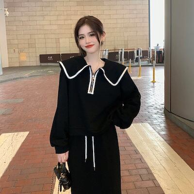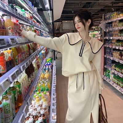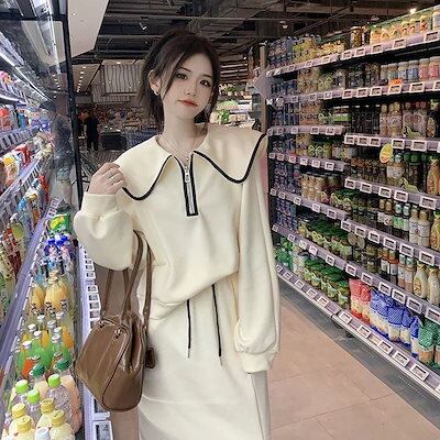 韓国ファッション 大きいサイズ 運動 セット 長袖 トップス おしゃれ 着痩せ スカート 二点セット