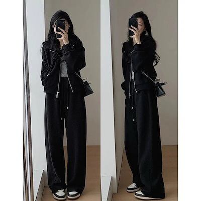 2024秋冬ジャージ二点セット運動セットおしゃれ百掛け長袖無地デザイン感ニッチカジュアルスウェットズボン