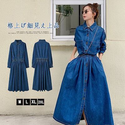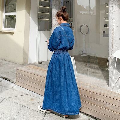デニムロングワンピース デニム デニムワンピース 長袖/七分/五分袖 きれいめ レディース 春 夏 秋 ロング デニムワンピ サロペット大きいサイズ マキシ丈 Aライン ポケット付き サロペット