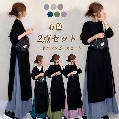 ワンピース 6色 長袖レディース春秋シャツワンピース2点セットスリット入り切り替え大人リネンワンピースセットアップ ワンピース 夏 韓国ファッション母の日
