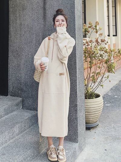 高級感 気質 おしゃれ スウェット ワンピース フード付き 春秋 ワンピース ゆったり 長袖ワンピース ロング ワンピース