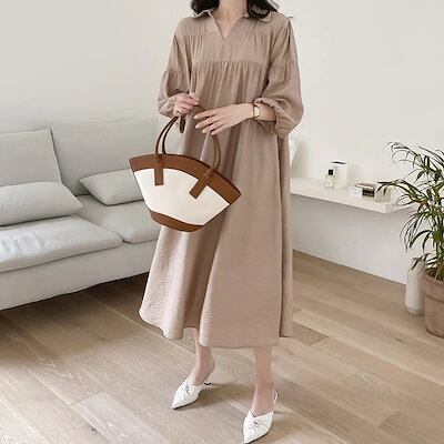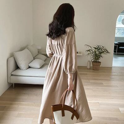 ワンピース 秋 レディース ロングワンピース 韓国ファッション ゆったり 2024春秋新作 無地 レディースファッション 長袖 半袖 ノースリーブ キャミソール