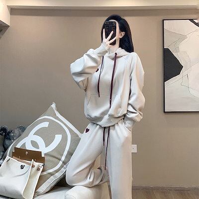 フード付き スウェット+パンツ 2点セットレディース 春秋 カジュアル スウェット ズボン 通勤 韓国ファッション セットアップ