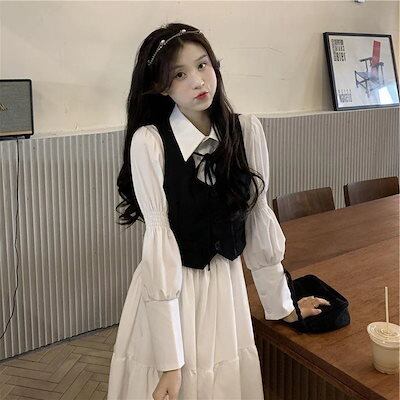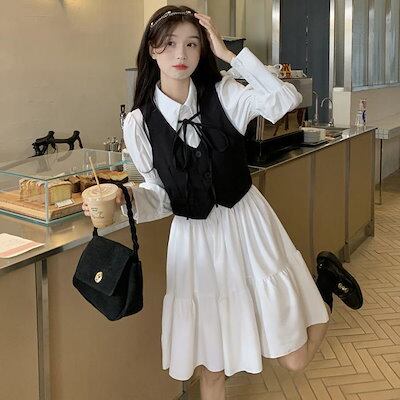 ベスト+ワンピース 2点セットレディース 春秋 長袖 ワンピース 韓国ファッション セットアップ