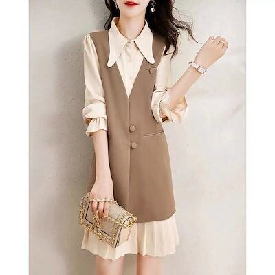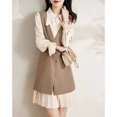 ワンピース 秋 ワンピース ベスト セット 着やせ セット ワンピース レディース