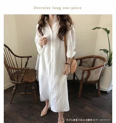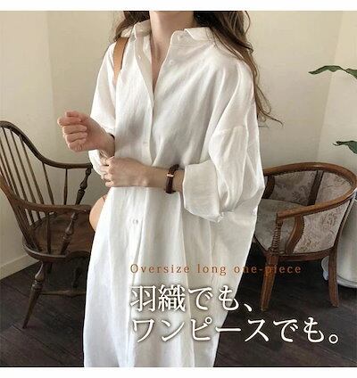 シャツワンピース 春 秋 ワンピースシャツ ロング オーバーサイズ ロングシャツ レディース 長袖 かわいい おしゃれ ワンピ シャツワンピ ロングワンピ オーバーサイズ 無地 体型カバー