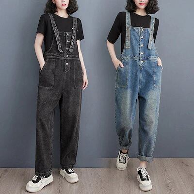 ニムサロペット レディース 春秋 ハイウエスト ゆったり ストレート ワイドパンツ オールインワンパンツ