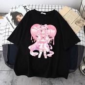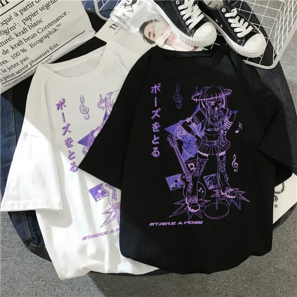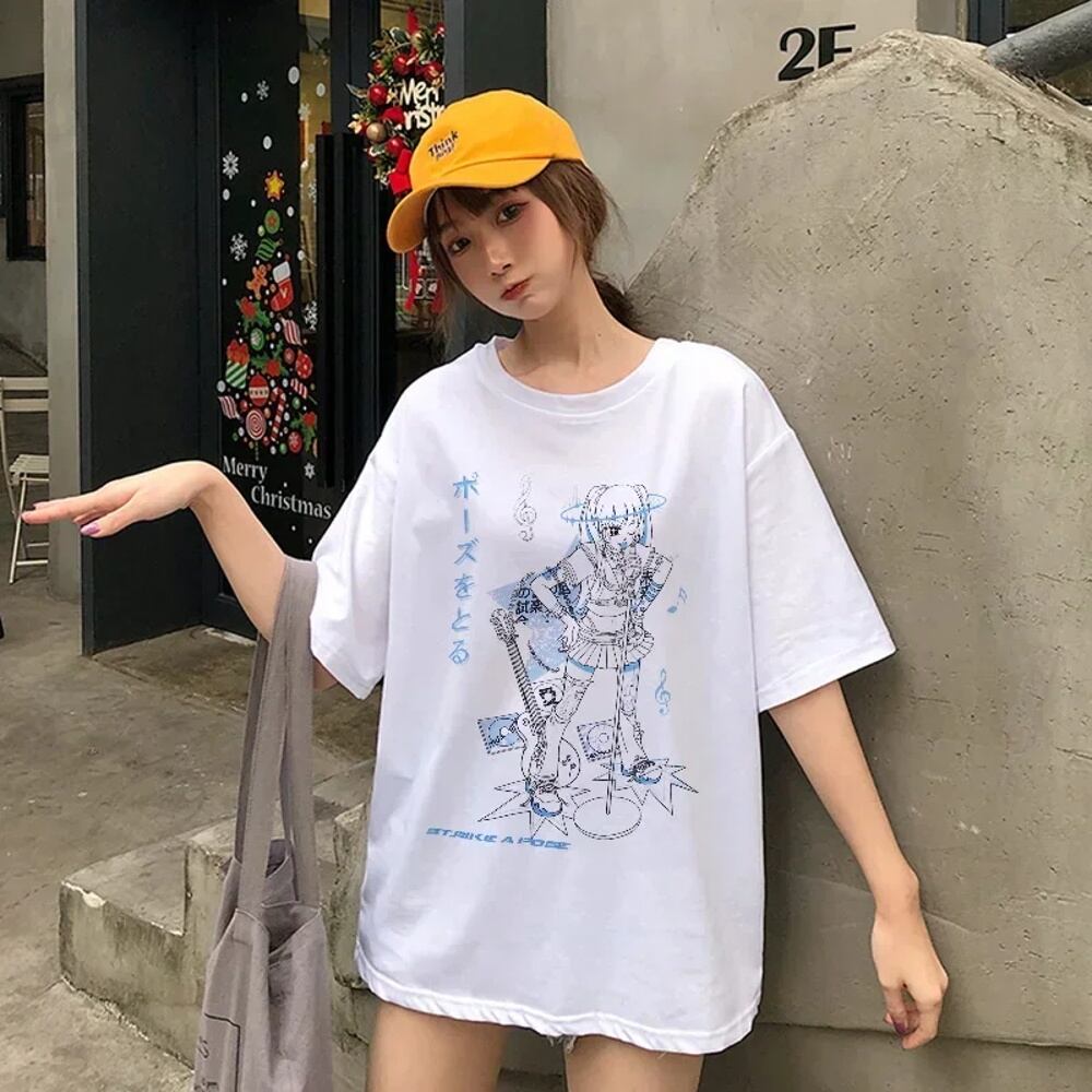 女性用半袖Tシャツ,カンワイイイハラジュクミュージックガールTシャツ,ブラッククロップトップ,女性用y2k mujer grunge kpop T240926003510_14