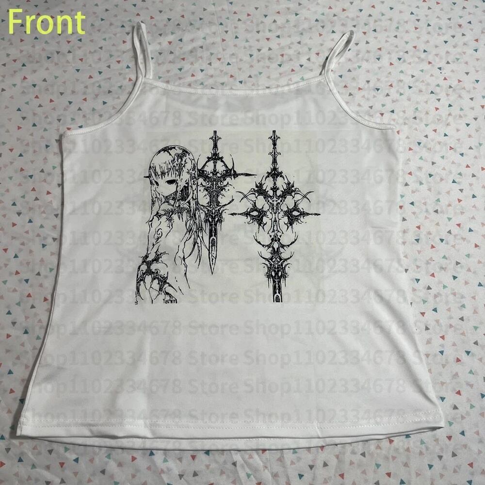 ノースリーブの漫画プリントTシャツ,y2kスタイルのノースリーブタンクトップ,美的,ソフト,セクシー,カジュアル,原宿,すべてにマッチ,トリミング,グランジ,emo T240926003649_09
