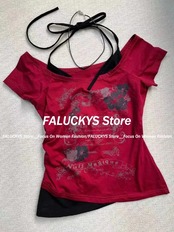 女性のレトロな紫色のホルターネックTシャツ,偽のツーピースプリントTシャツ,y2kストリートウェア,スリムフィット,原宿ファッション,カジュアルなトップス,流行の女の子,夏 T240926003733_08