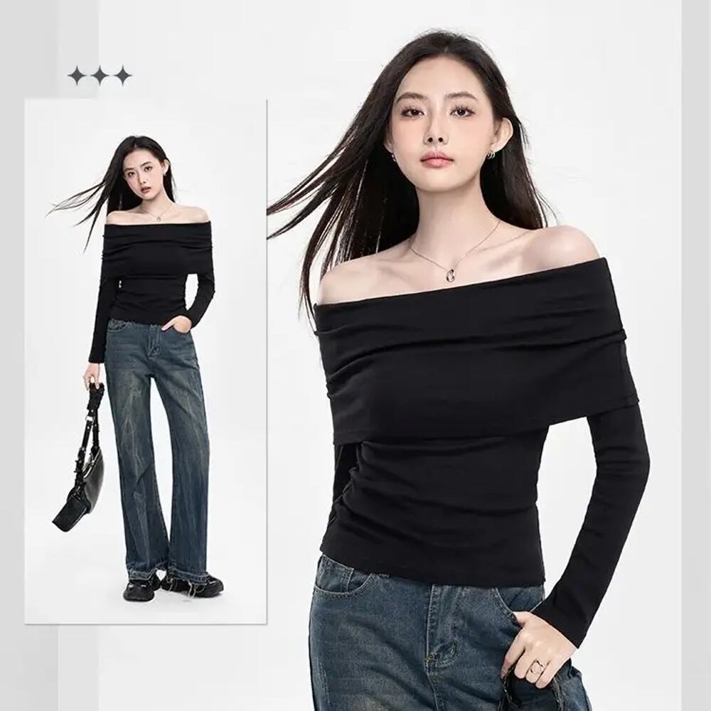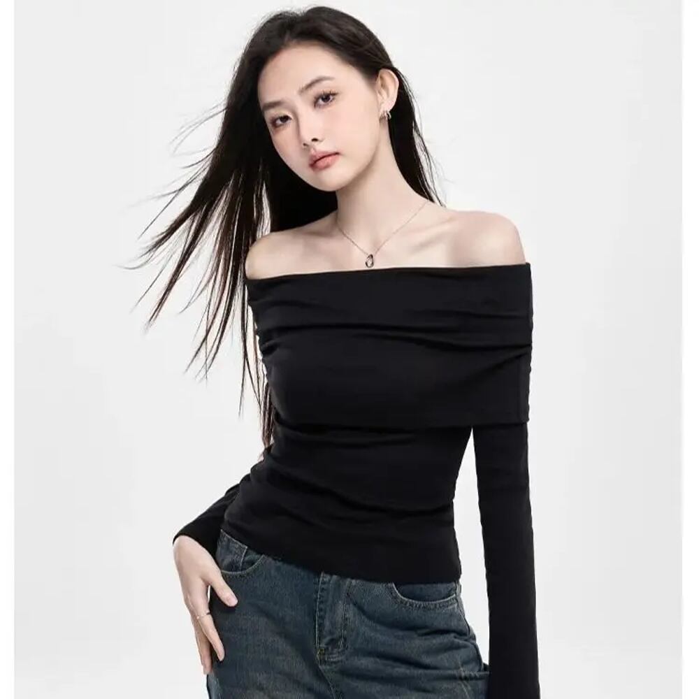 女性用ストラップレストップ,長袖,ニット糸,スリム,スリム,ブラック,ソフト,秋冬 T240926004429_01