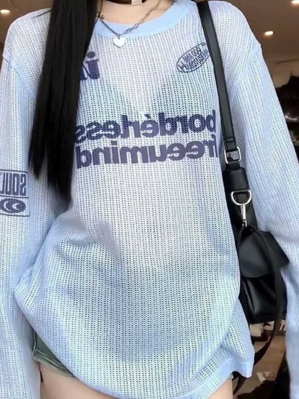 広州-女性用透かし彫りTシャツ,長袖ニットトップ,韓国ファッション,カジュアルストリートウェア,原宿,セクシー,y2k,kpop T240926004506_02