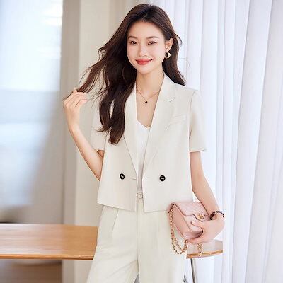 夏 涼しく楽ちんセットアップ 2024 シフォン 半袖 スーツ 卒業式 ママ スーツ セットアップ 二点セット レディース スーツセット セットアップ ママスーツ 卒業式パンツスーツ スーツジャケ
