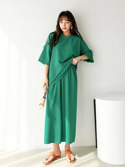 夏 涼しく楽ちんセットアップ 2024 スウェット セットアッ スウェット上下セット 半袖 ハーフパンツ スカート接触冷感 プパンツルームウェア セットアッ