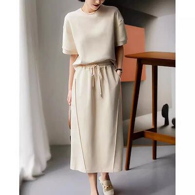 夏 涼しく楽ちんセットアップ 2024 おしゃれ 運動 カジュアル 半袖トップス スリット スカート 二点セット セット レディース スーツセット 通勤 着痩せ レディースファッション