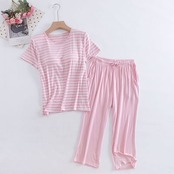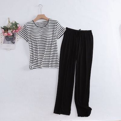 夏 涼しく楽ちんセットアップ 2024 ルームウェアモダールレディースカップ付き半袖パジャマ二点セット