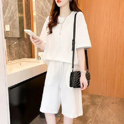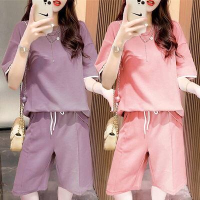 夏 涼しく楽ちんセットアップ 2024 スウェット上下セットスウェット セットアッ 半袖 ハーフパンツ プパンツルームウェア セットアップ 接触冷感 ルームウェア セットアップ