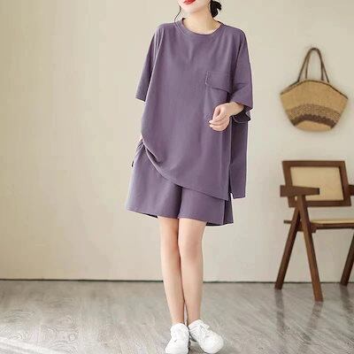 夏 涼しく楽ちんセットアップ 2024 スウェット セットアッ ゆったり セットアップ 大きめサイズ半袖 ハーフパンツ 接触冷感 プパンツルームウェア セットアップ