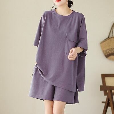 夏 涼しく楽ちんセットアップ 2024 スウェット セットアッ セットアップ 大きめサイズ半袖 ハーフパンツ 接触冷感 プパンツルームウェア セットアップ ルー