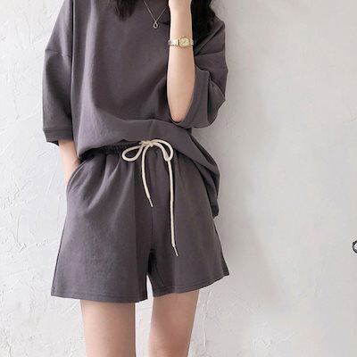 夏 涼しく楽ちんセットアップ 2024 大きめサイズ 100KG カジュアル 運動 ショットパンツ 二点セット ゆったり 着痩せ セットアップ レディース 服 半袖 ルームウェア ホームウェア