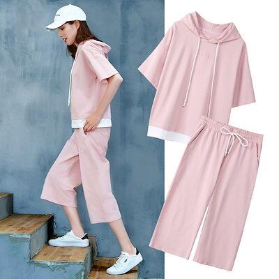 夏 涼しく楽ちんセットアップ 2024 2色 カジュアル 運動 ショットパンツ 二点セット ゆったり 着痩せ セットアップ レディース 服 半袖 ルームウェア ホームウェア