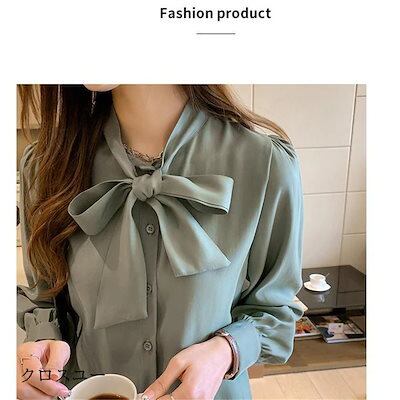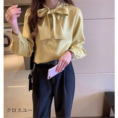 高級な質感 シャツ レディース ブラウス 長袖 ボウタイ ボウタイシャツ フォーマル リボンタイ トップス カジュアル 無地 普段着 オフィス 通勤 OL