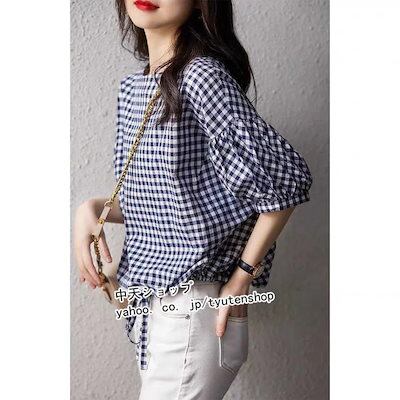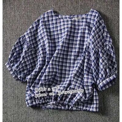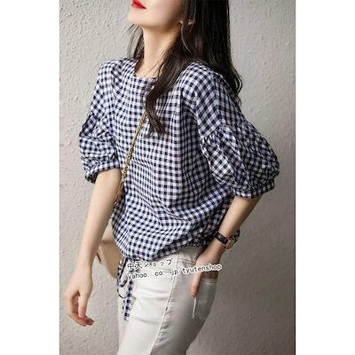 ブラウス レディース 半袖 チェック柄シャツ オシャレブラウス 綿麻 ショート丈ブラウス ドルマン袖 トップス カジュアル 着痩せ 気質 ゆったり お出かけ 新作