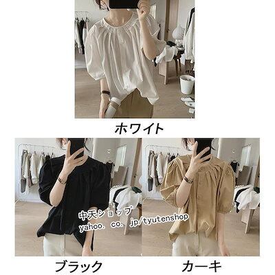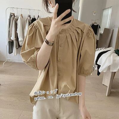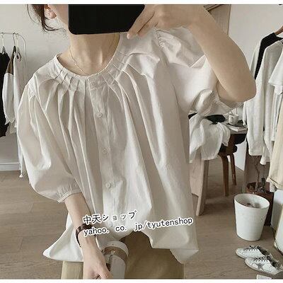 ブラウス 半袖 レディース パフスリーブブラウス シャツ ゆるトップス 着痩せ 夏新作 丸首 デザイン感 ゆったり オシャレブラウス 気質大人 カジュアル お出かけ
