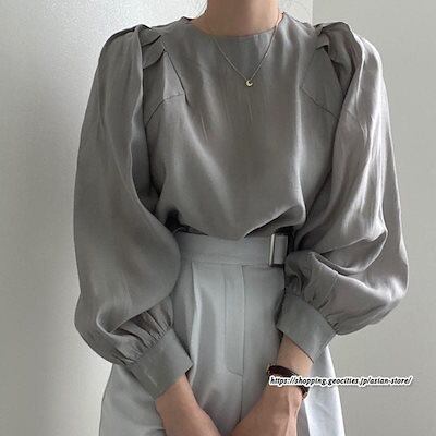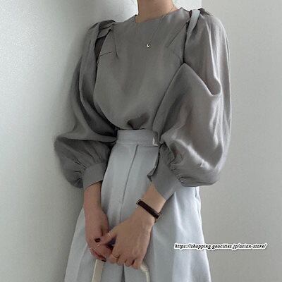 新入庫 パフスリーブブラウス レディーストップスシャツ 長袖 春夏服 透け感 丸首 フリル プルオーバー 長袖ブラウス シャツブラウス オフィス 大人 卒業式 入学式 20代