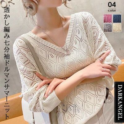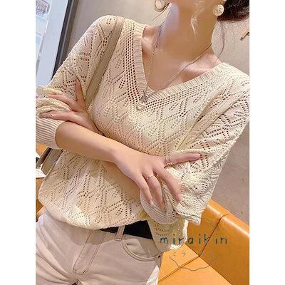 超人気 ブラウス レディース 長袖 ニットブラウス バルーンスリーブトップス 春 夏 透かし 可愛い サマーニット カジュアル 着回し 体型カバー きれいめ 通勤