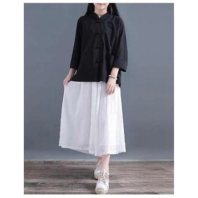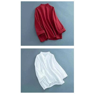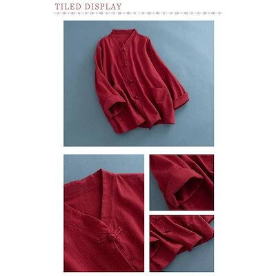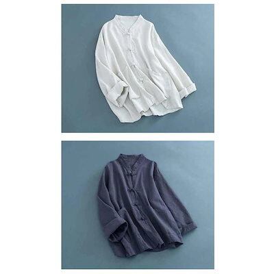 シャツ ブラウス レディース チャイナブラウス トップス 長袖 羽織り チャイナボタン 綿麻 リネン風 カーディガン アウター 無地 ゆったり マオカ