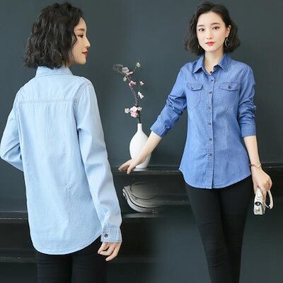 デニムシャツ シャツ レディース デニムブラウス トップス 大きサイズ 薄手 長袖 春秋 ベーシック デニム 長袖シャツ カジュアル