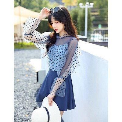 高級な質感 水着レディース 体型カバー ワンピース型 スカート付き ハイネック 日除け長袖 オールインワン フレア 可愛い 20代 30代 40代