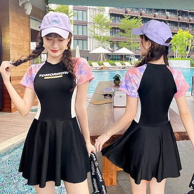 水着 レディース ワンピース水着 体型カバー 2点セット スイムウェア ビーチウェア 着痩せ スクール水着 プール 旅行 温泉 学生 可愛い オシャレ