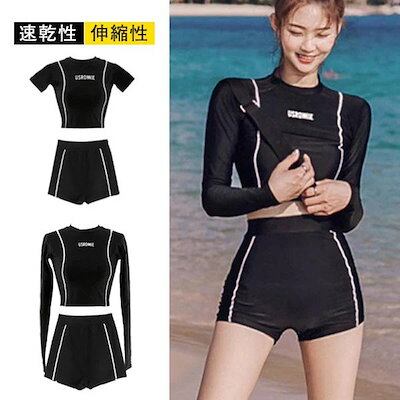 フィットネス水着 レディース 上下セット 競泳水着 セパレート 半袖 長袖 英字 伸縮性 速乾性 温泉 パッド付き ラウンドネック 上品 可愛い